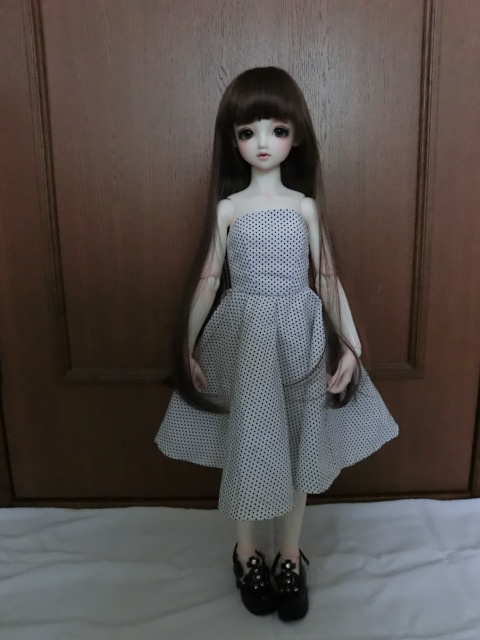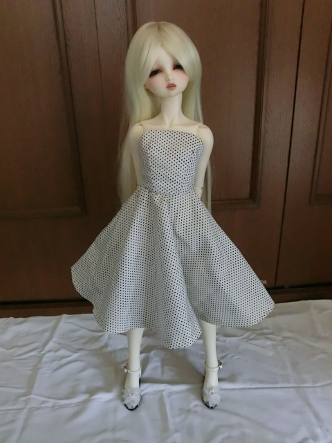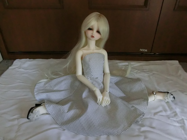 服、夢天使のオリジンボディで原型取って作ったものなんですが、SD女の子(すわりっこ)ボディだとかなりきつい感じです。