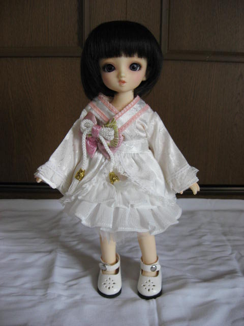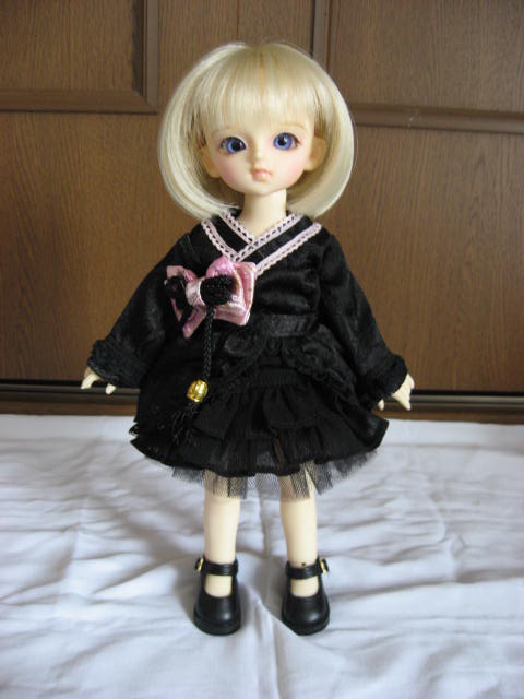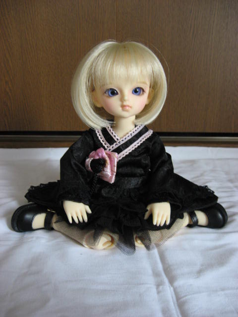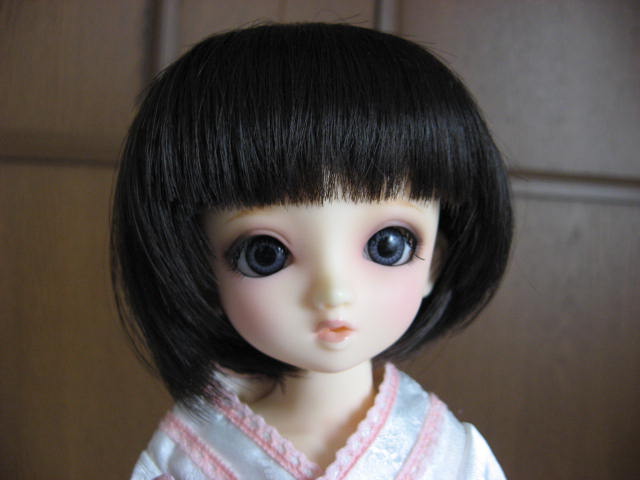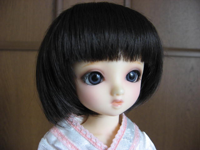 この後にも記事を上げるのですが、それと関連して、『ももいろ着物ドレス』(ページ左下)を着せて、自作の黒い追試しないタイプのレジンアイと、LUTSさんで買ったウィッグ(たぶん『CDW-07 For Honey Delf (Smoky Black) -耐熱』だったと思うのですが、間違ってたら後日修正します;)を被せてみたんです。