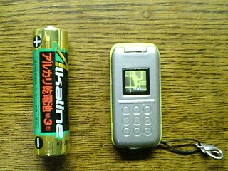 ミニチュア携帯です(左の単三電池は比較用)。